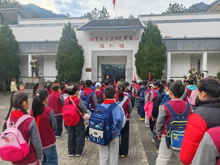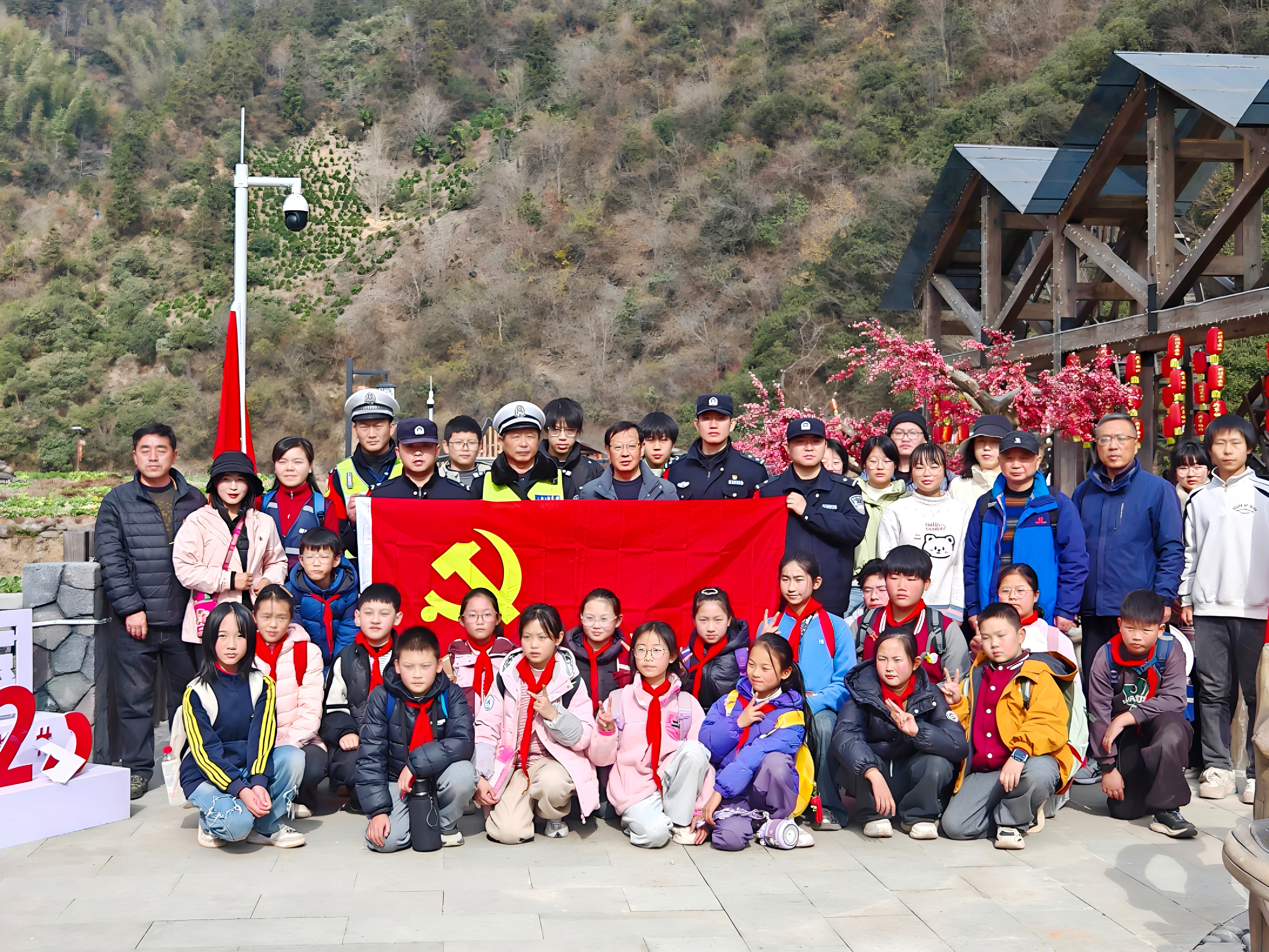 12:00,各路队伍徒步到达终点。在党旗的指引下,学校党员开展了党员主题日,公安民警举行了防电诈宣讲,学生们开展了爱护大自然活动。汤口小学的同学们参观了陈列馆,聆听了事迹介绍,重温那段烽火连天的峥嵘岁月。
