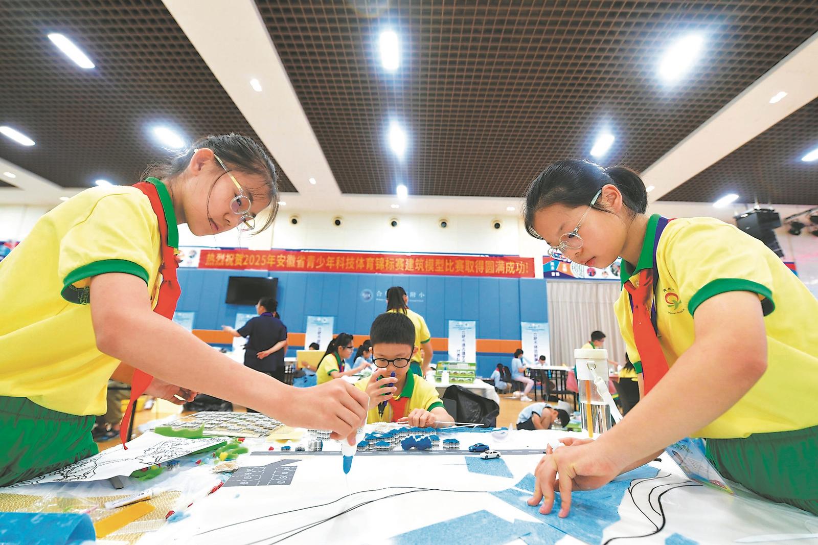 8月8日至12日,2025年安徽省青少年科技体育锦标赛建筑模型比赛在合肥举行。此次赛事设“援梦之城”城堡创意设计赛、木桥梁结构设计赛、“水调江南”写意石桥创意赛等7个个人赛(小学男女组、中学组)和“城市梦想”区域规划赛、创意花窗设计制作赛、“城市地标建筑”场景设计制作赛等3个团体赛(小学组、中学组),来自全省的11支代表队220名运动员参加比赛。