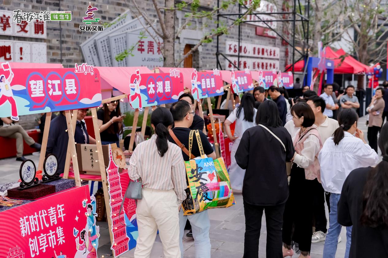 活动同步推出“新时代青年创享市集”,汇聚岳西翠兰、望江挑花、怀宁贡糕等几十个非遗及农创品牌,年轻游客们举着手机穿梭在摊位间或拍照分享,或仔细聆听摊主讲解,安庆的文化符号转化为可触可感的消费体验。