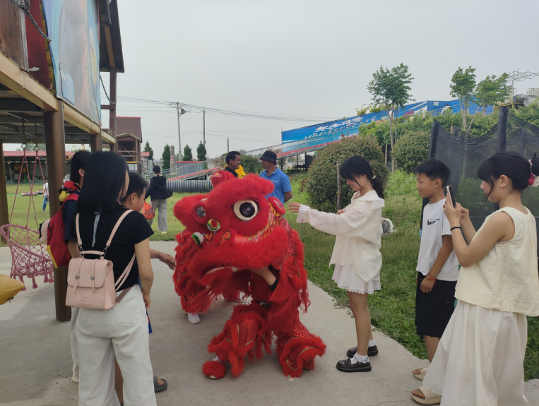 在该镇动乐园景区,伴随着铿锵的锣鼓声,一条活灵活现的“金龙”欢腾起舞,或上下翻飞,或蜿蜒盘旋,尽显威风。舞狮表演者则踩着喜庆的鼓点,时而腾挪跳跃,时而和游客互动,引得游客们纷纷鼓掌叫好。