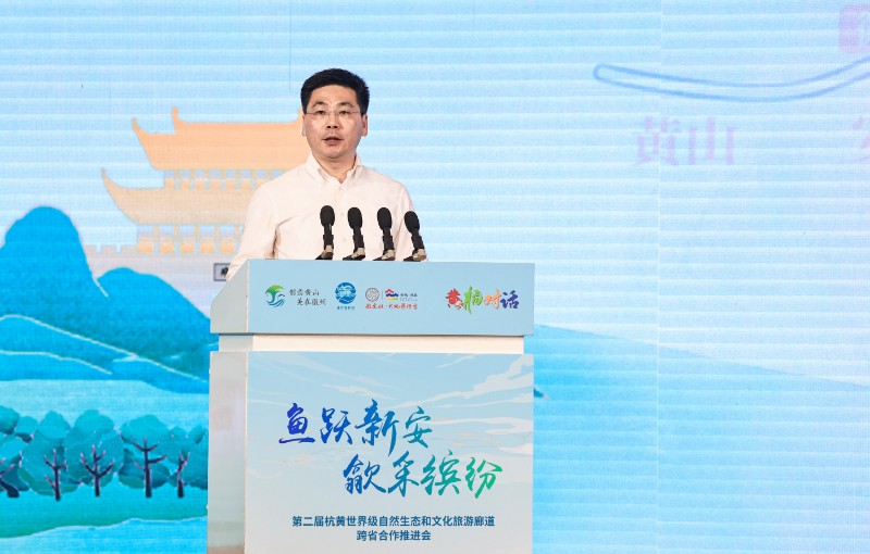 歙县县委副书记、县长王奇勇在致辞中表示:“千百年,多少代,我们与杭州一江水亲、青山同住,今天,我们接过历史接力棒,续写新时代合作发展新篇章。真诚期待第二届黄杭对话能够进一步推动两地‘互推、互联、互动’,从‘一江共护’迈向‘一域共富’,携手打造跨区域合作新典范!”