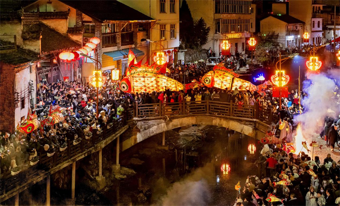 鱼灯的活力根植于“主客共享”,在汪满田村、瞻淇村等地,鱼灯巡游是全民参与的盛事。如今,这一传统被创造性转化:游客白天可在文创店学习鱼灯制作,夜晚提着亲手绘制的鱼灯,加入巡游队伍,成为流动光影的一部分,真正实现从“观看者”到“参与者”的身份转变。