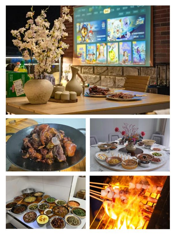 民宿坚持“从田间到餐桌”的透明供应。冬日主打铁锅炖大鹅、柴火跑山鸡,食材均来自自营生态菜园与散养基地。晨间的暖心早餐、夜里的自助烧烤,都是山野的馈赠。