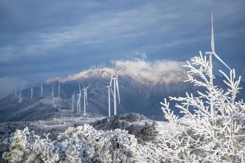 岳西牛草山下雪了,青山薄雾,银装素裹。