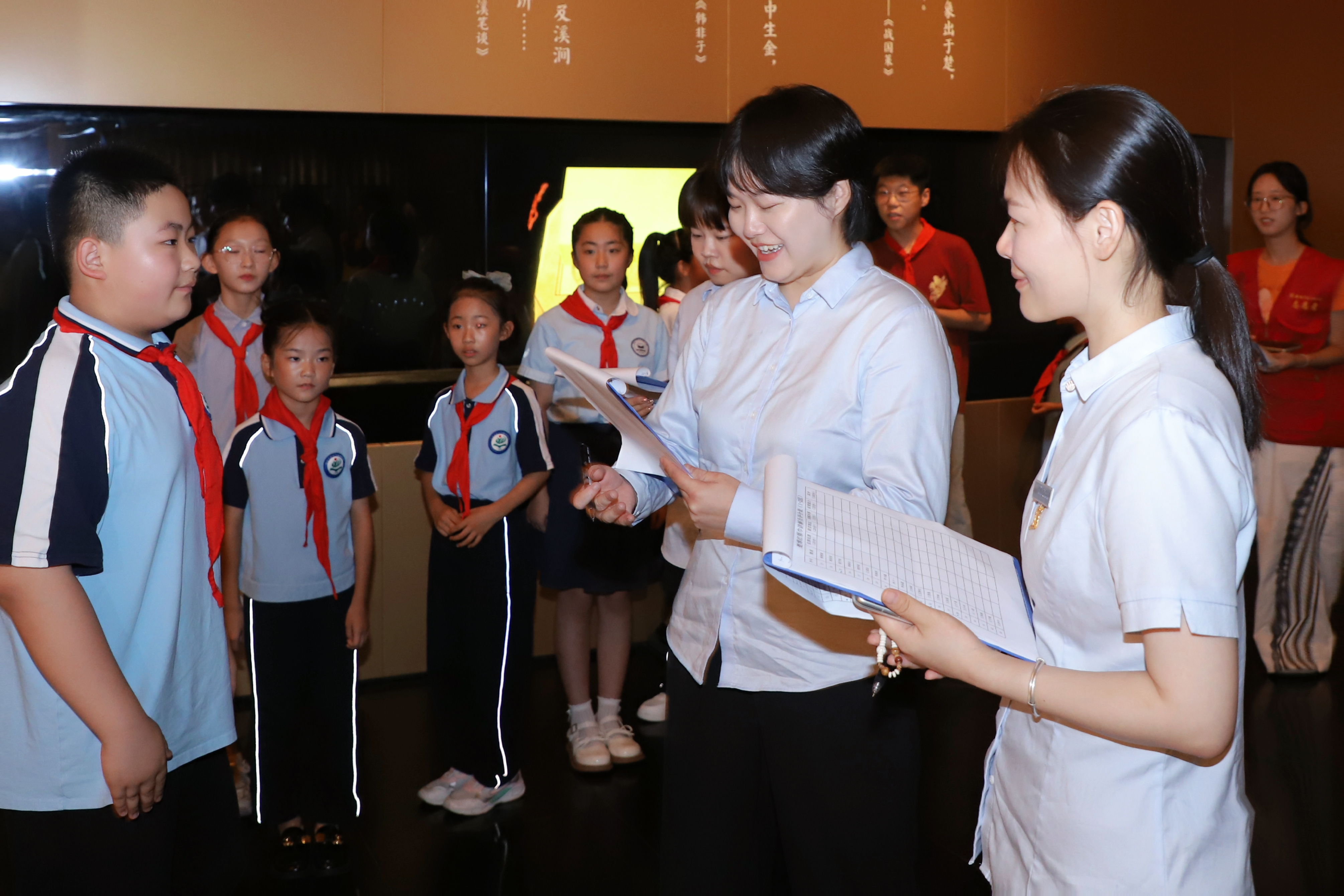 加强队伍建设,健全志愿讲解新路径。联合宣传、教体、文旅等部门,面向全县开展“红领巾讲解员”招募活动,通过报名、选拔、培训、现场演练等环节,把好“红领巾讲解员”入口关。联合相关文化场馆“定制”适合少先队员的讲解词,加强基本功训练,确保讲解服务更有特色、更有效果、更接地气。综合少先队员业余时间和场馆讲解需求,科学制定讲解“排班表”,做好时长统计和过程管理,有序引导“红领巾讲解员”开展讲解服务。