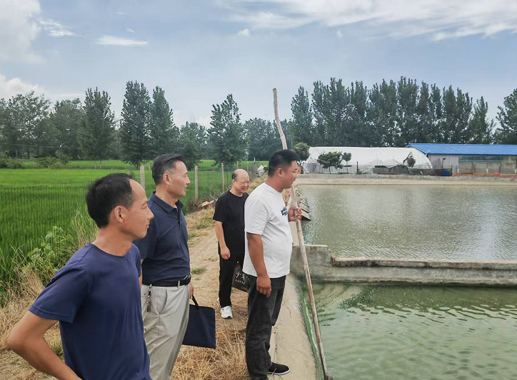 技术人员顶着烈日,冒着高温深入到保义镇各村养殖户的养殖塘口进行实地巡查走访,了解各养殖塘口当前的水产养殖情况。在保义镇塘郢村三泰水产养殖专业合作社甲鱼养殖塘口,技术人员详细地向养殖户了解了该养殖塘口的养殖面积、养殖品种、养殖苗种来源、养殖苗种的质量、规格以及养殖密度等基本情况,并就当前养殖产量、销售和效益情况以及当前养殖生产出现的困难问题给出了分析,提出了应对措施。