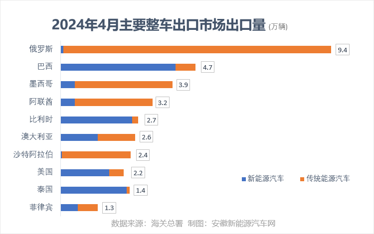 另悉,在出口海外市场分布上,4月的出口目的地,俄罗斯、墨西哥和巴西出口量位居前三;新能源汽车出口的前三大市场分别为比利时、巴西和英国。这也跟一定的地理条件有一定的联系,如俄罗斯天气极寒,奇瑞的燃油车很受俄罗斯消费者的青睐。而在如美国等许多地方是地广人稀,能装能拉的皮卡车等则更受欢迎。