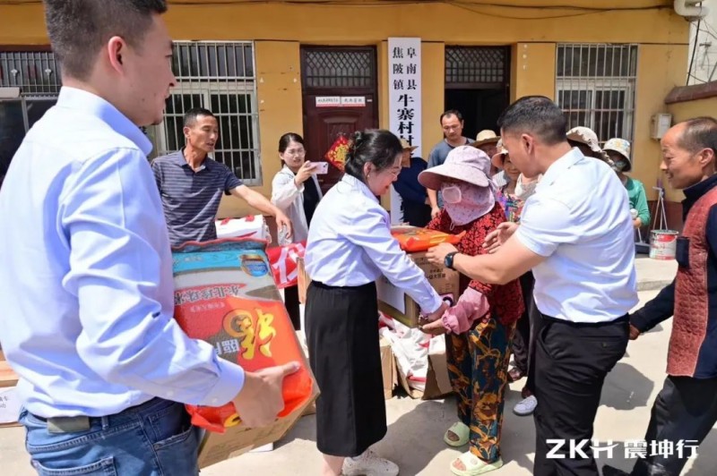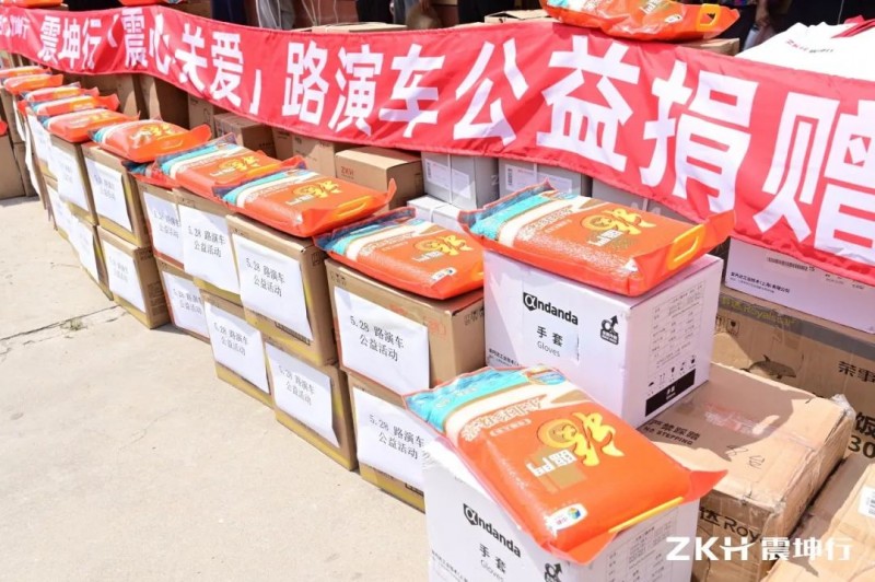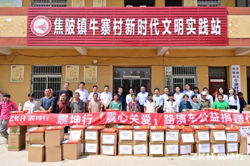 在“震心关爱”公益路演车活动当天,震坤行向牛寨村捐赠打印机、抽纸、垃圾袋、消暑盐汽水、消暑降温包等办公物资,并向牛寨村困难村民捐赠米面粮油食品。改善村居环境及困难群众的生活条件。