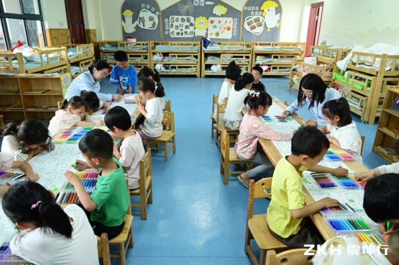 与此同时,震坤行的志愿者“老师们“带领牛寨村幼儿园大班的孩子们一起用彩笔绘制4米长的插画。期待孩子们能够有梦想,有努力,有韧性地奋力向上、追逐梦想!