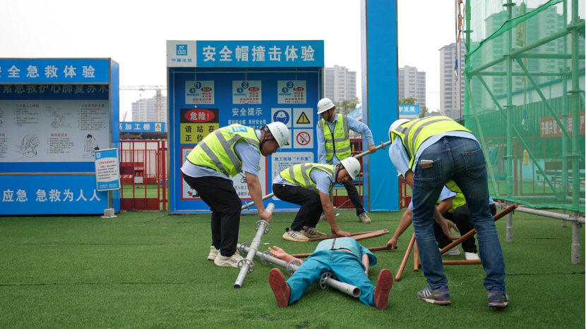 为进一步筑牢安全生产防线,营造项目良好的安全生产氛围,结合2024年安全生产月“人人讲安全、个个会应急--畅通生命通道”主题,6月25日,中建交通河南公司滁州皖东农商银行项目组织开展高处坠落应急演练。各参建单位代表、一线工友代表等共计80余人参加演练活动。