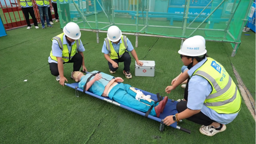 本次演练以“工人在高处作业过程中因操作不当且未正确佩戴安全带导致出现高处坠落事故”为模拟场景。活动中在对全体演练人员进行分组,明确任务和要求后,大家按照既定应急程序,迅速启动相关应急预案,有序开展应急演练。各小组密切配合、积极响应,信息报送畅通,现场处置有序,充分模拟项目从“事件发生”到“事件报告”,“从预案启动”到“医疗救护”的全部程序,起到了以演促改、以练为战的效果。