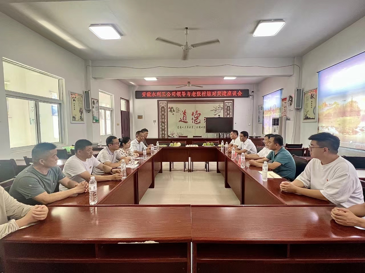 在老张村的党群服务中心,一场热烈而富有成效的交流正在进行。安徽水利三分公司党总支与乡镇分管负责同志、村两委以及驻村工作队围坐在一起,大家的目光聚焦在老张村的发展蓝图上。这里,有对老张村产业发展现状的深入剖析,有对新时代人才培养的殷切期望,有对乡土文化建设特色的自豪展示,有对绿色生态发展理念的坚定追求,更有对基层党组织战斗堡垒作用发挥的热烈探讨以及对未来的美好憧憬。