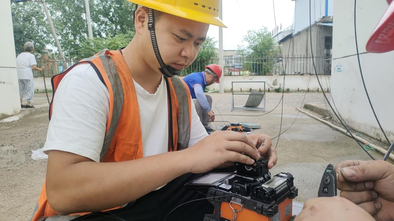 图为网络维护人员刘威熔纤进行千兆XG端口扩容