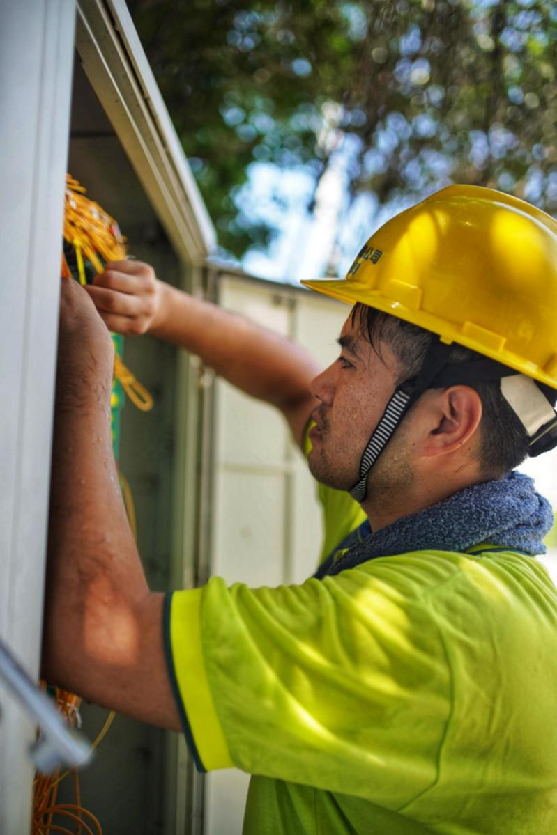 机房之外,网络维护人员在炎炎烈日下开展网络改造工作。为用户带去更好的无线网络体验,他们攀爬、下井、改纤、拉网、扯线,每一步操作都伴随汗水的滴落。