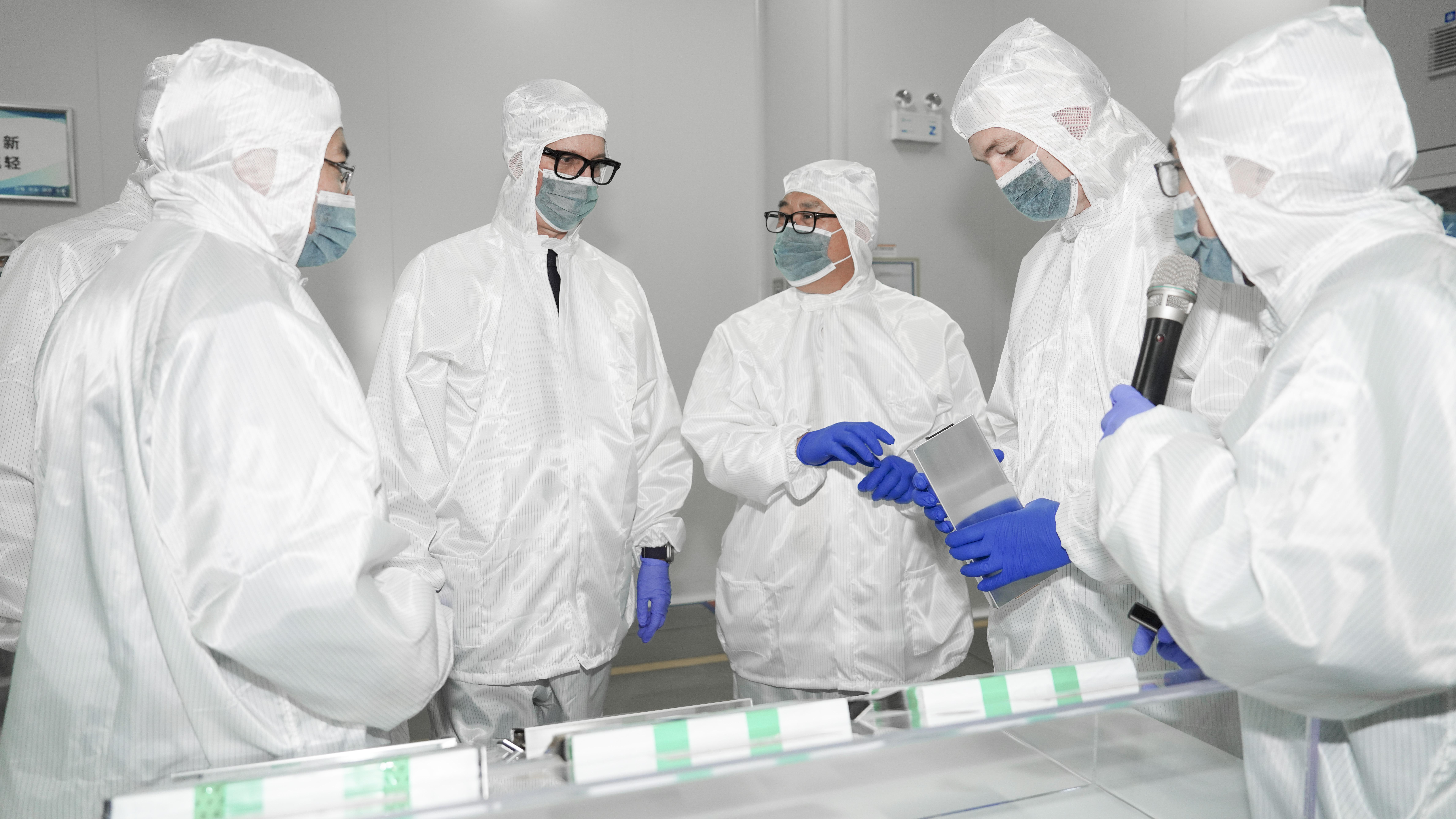 大众汽车集团Thomas Schmall、PowerCo Frank Blome、卓越电池中心Dr. Günther Mendl等在李缜董事长陪同下参观UC产线