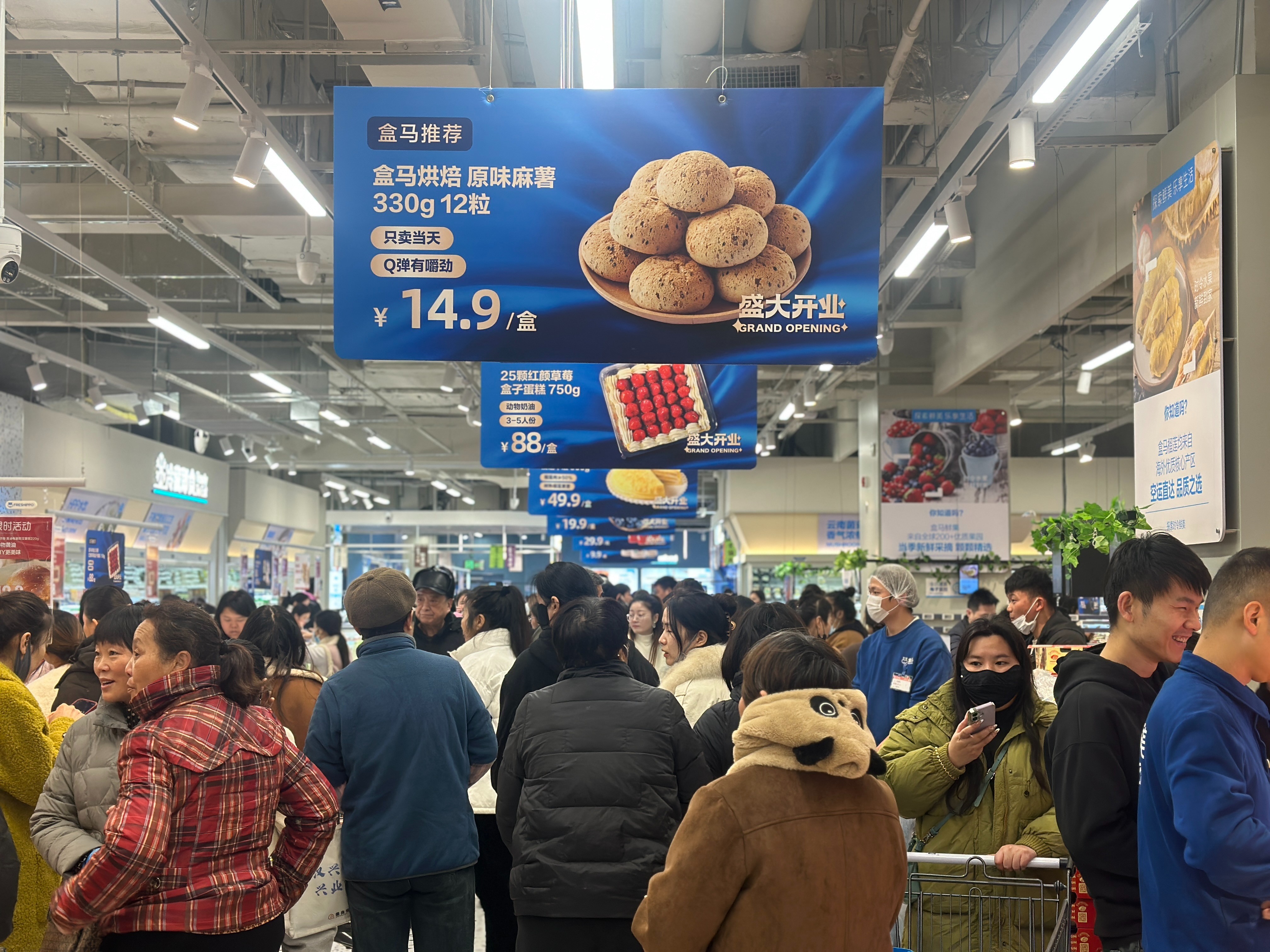 除了产品与供应链的创新,盒马在消费场景上的巧思,更让购物变成了一场充满温度的休闲体验。开业期间推出的多重福利活动,将“买买买”升级为“乐在其中”,让门店成为市民全家出游的新选择。