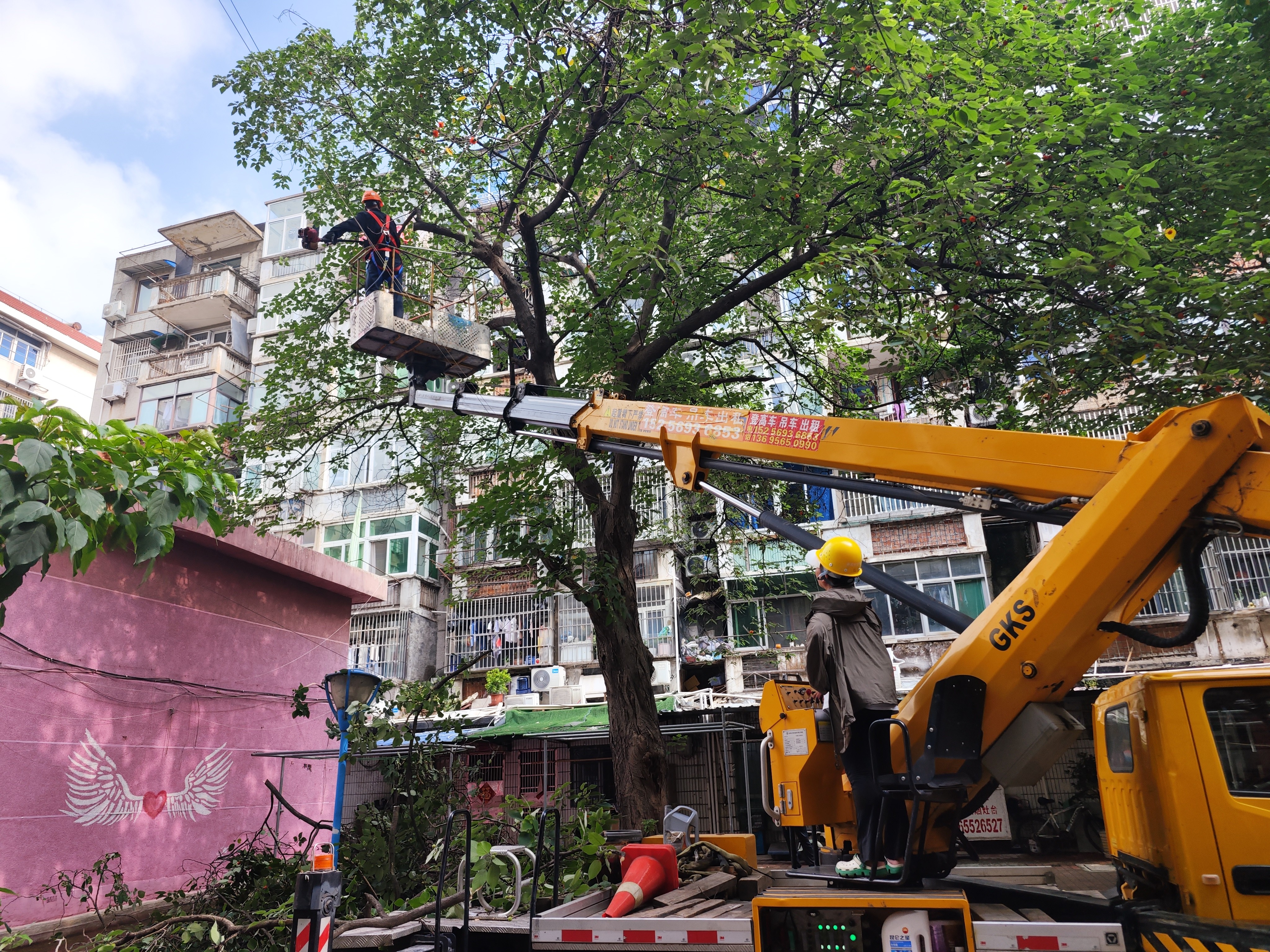 “这树剪得真讲究,既不挡窗户,看着也精神!”在光明新村的绿化带旁,居民们围着修剪后的树木赞不绝口。据了解,社区请来了专业园林绿化人员,和志愿者一起为树木“理发”,按“疏枝不毁冠”的原则修剪过密枝条,对3米以上近窗树木进行控高,统一清运枯枝败叶,让阳光重新照进居民家中。