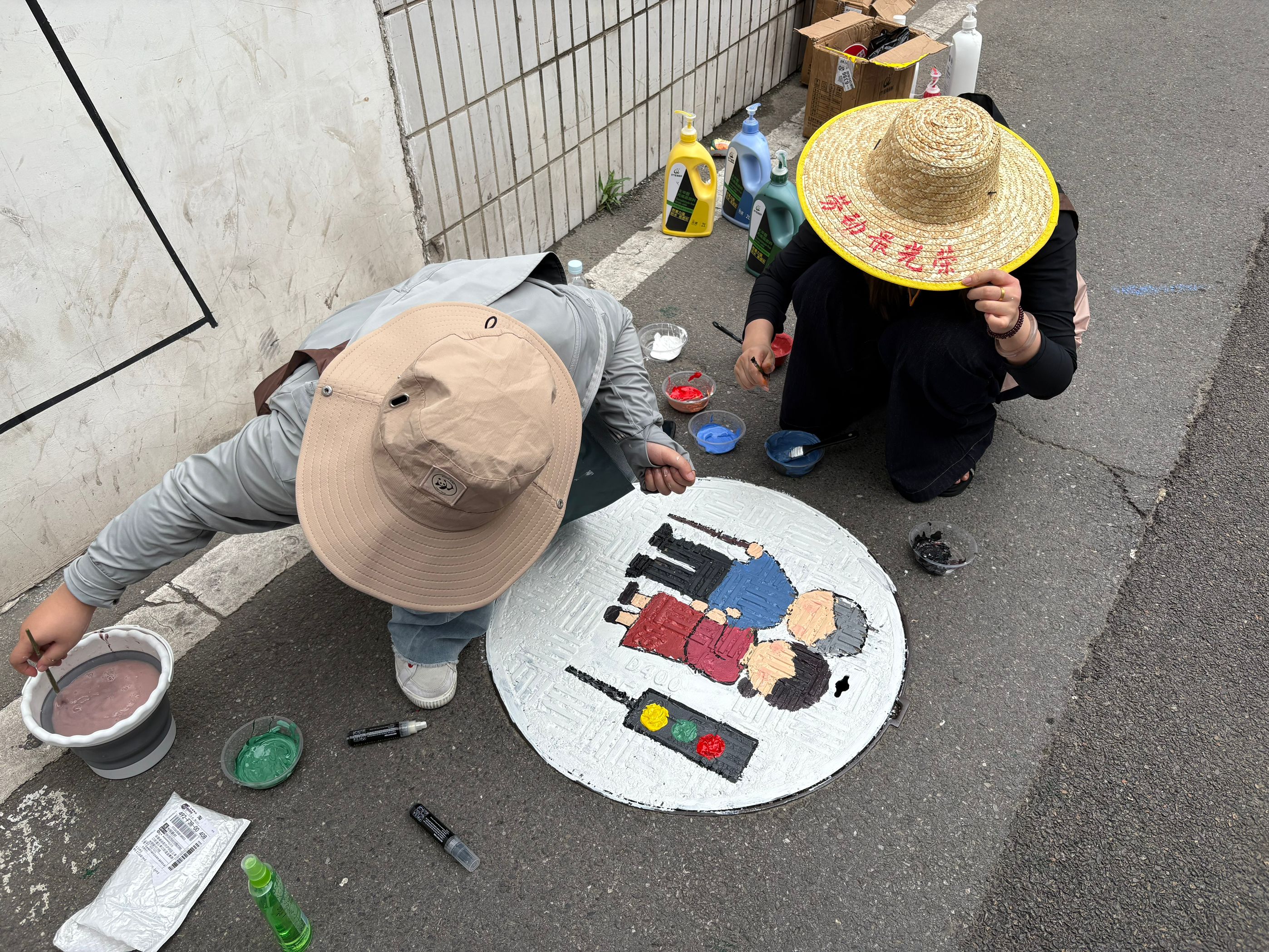 志愿者彩绘窨井盖