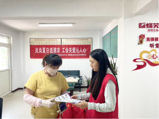 近日,持续高温天气给户外工作者带来了严峻“烤”验。为切实关爱一线劳动者,鸠江区湾里街道金湾社区工会驿站开展了“炎炎夏日送清凉 工会关爱沁人心”主题活动,为快递员、外卖骑手、环卫工人、出租车司机等群体送上解暑物资,并同步开展反诈宣传,在炎炎夏日中传递工会“双重清凉”。