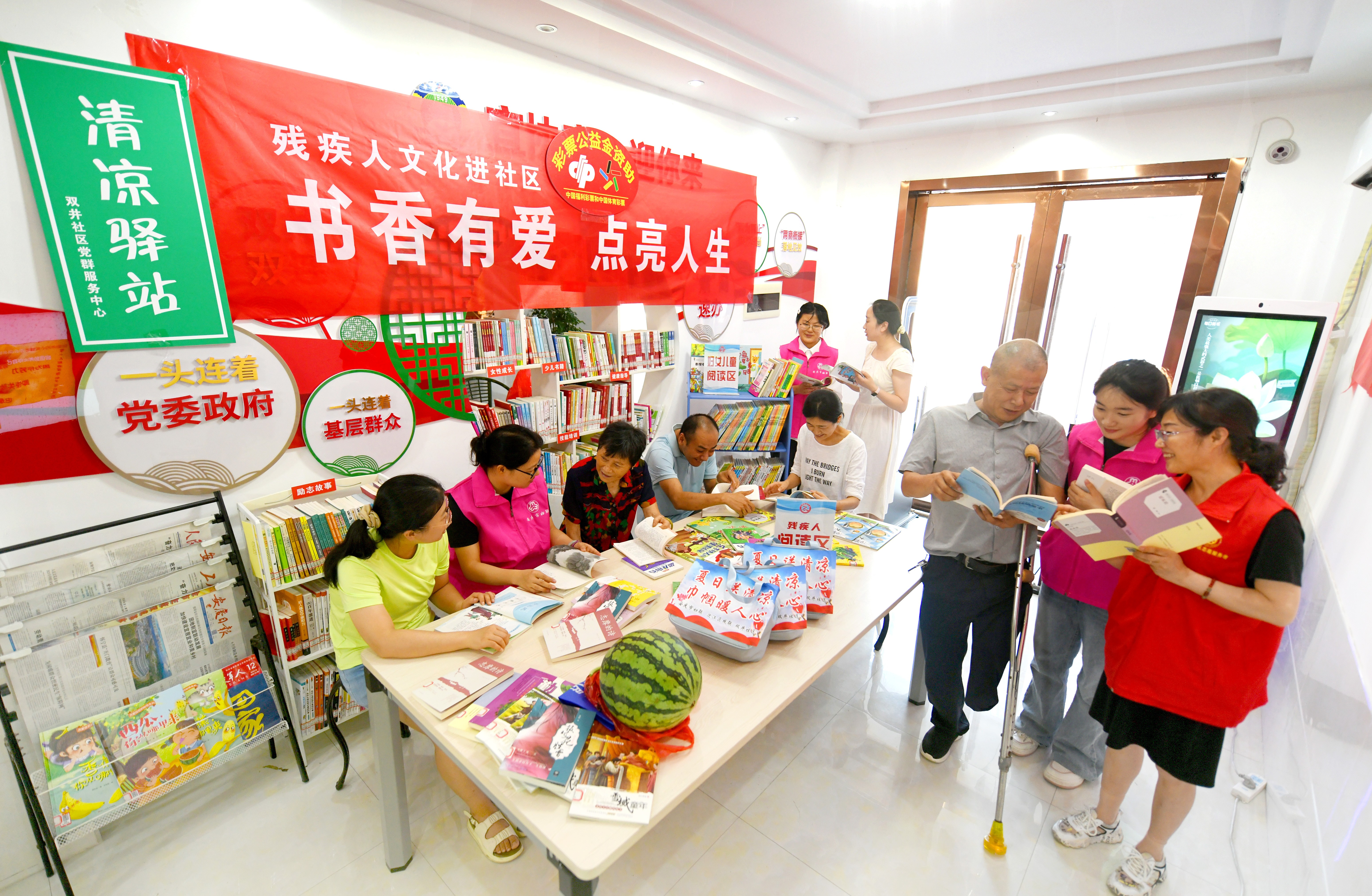 7月29日,一场别开生面的残疾人文化进社区活动—“书香有爱  点亮人生”读书会在安徽省安庆市迎江区双井社区党群服务中心“清凉驿站”里拉开了帷幕。据悉,该读书会采用“巾帼志愿者领读+残疾人分享”模式,通过书香传递爱心、用阅读点亮人生,让残疾人文化在社区扎根生长。