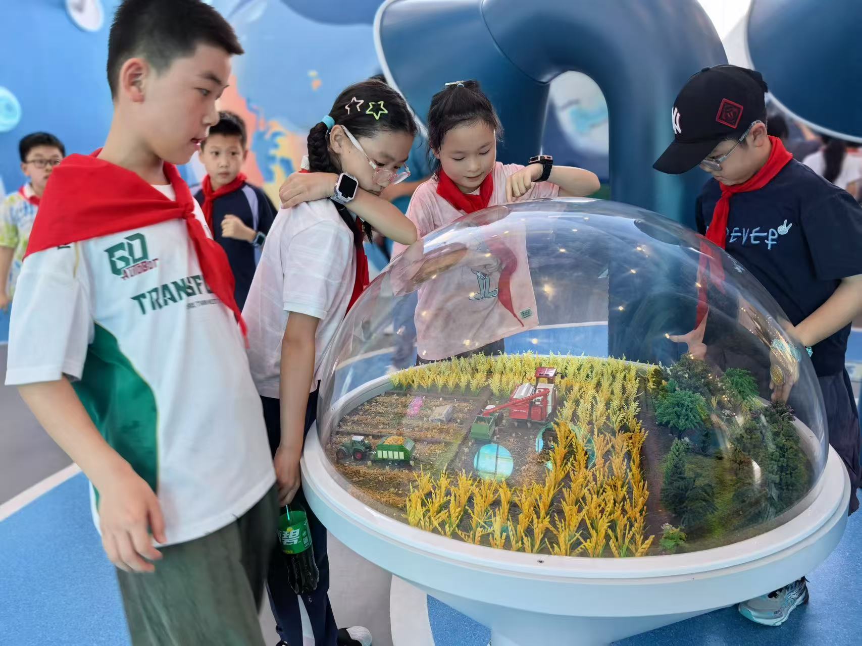 溯源稻作文明,厚植文化根基。活动首站来到中国稻米研学馆。面对展柜中河姆渡遗址的碳化稻谷、历代农耕工具及声光电技术呈现的稻作发展史,队员们睁大了好奇的眼睛。“稻谷栽培历史有多久?”潜山路学校晨曦小队队员姚晨宇的提问,引出了讲解员关于“稻作文明上万年传承”“安徽是重要稻米产区”的生动讲述。“每一粒米都凝聚着中华民族的农耕智慧”的总结,让孩子们在触摸历史中感知“中国饭碗”的深厚底蕴。