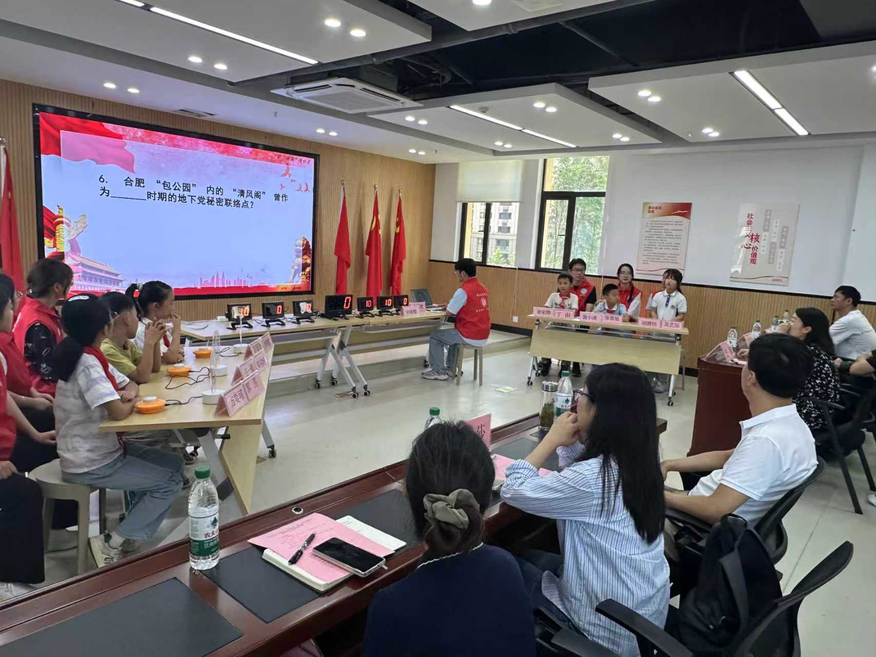活动以党史学习教育为核心,巧妙融合“学习强国”平台题库与安徽本地红色文化资源,打造了一场跨越代际的红色精神传承盛宴。活动中,老党员深情讲述革命峥嵘岁月,少先队员铿锵回应英雄事迹,高校志愿者与小朋友结对参赛,各群体沉浸式参与、互动共鸣。整场活动既寓教于乐,更于潜移默化间将爱党爱国情怀根植青少年心中,让红色精神薪火相传。