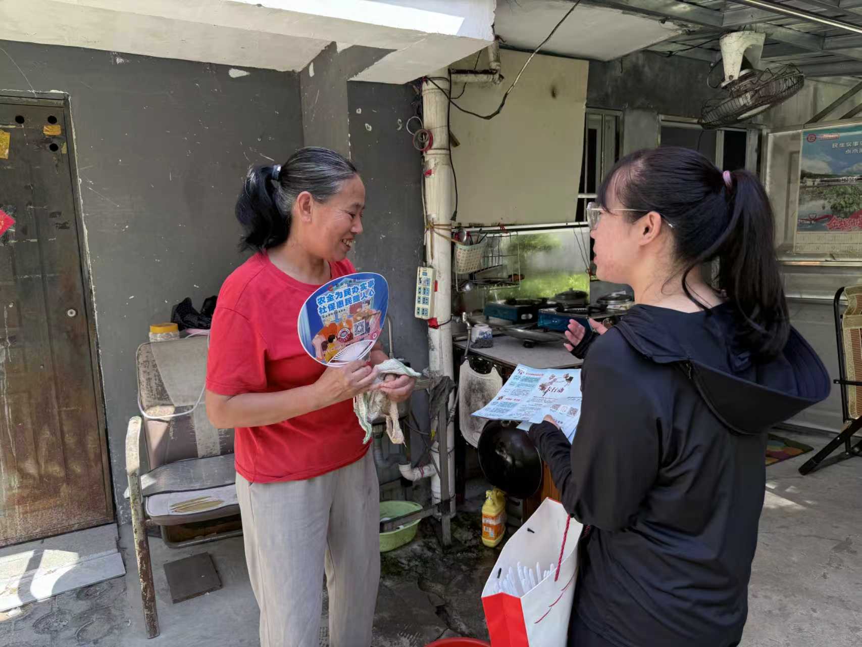 为扩大宣传覆盖面,工作人员还在所有物业小区门口、酒店民宿都摆放了反诈展板、在所有楼道口都张贴了反诈宣传画及地贴警示标语,以通俗易懂的语言和漫画形式,归纳了“十个凡是”防骗口诀,时刻提醒居民和游客保持警醒,提高安全防范意识。同时,为调动居民的参与热情,工作人员精心准备了印有反诈标语的购物袋、小风扇等实用小礼品,累计张贴反诈宣传画与地贴3000余张,安放展板24个、发放宣传礼品100余份,确保反诈知识“入眼、入脑、入心”。社区居民李阿姨说:“这些案例和礼品都很实用,这样的宣传很用心,我们会把反诈知识传递给更多老年群体!”