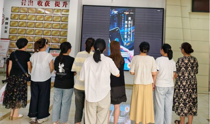 为扩大宣传覆盖面和影响力,凤凰社区精心策划,充分利用多种载体进行广泛宣传,打造立体化宣传矩阵。社区工作人员在社区宣传栏张贴网络安全主题海报,在群众密集处摆放宣传展板,向过往居民发放内容丰富的宣传单页,图文并茂地介绍网络诈骗、信息泄露等常见网络安全风险及防范方法。同时,还借助 LED 大屏滚动播放网络安全宣传标语,让居民在日常出行过程中,也能潜移默化地接受网络安全知识熏陶,营造出“处处有宣传、时时受提醒”的浓厚氛围。