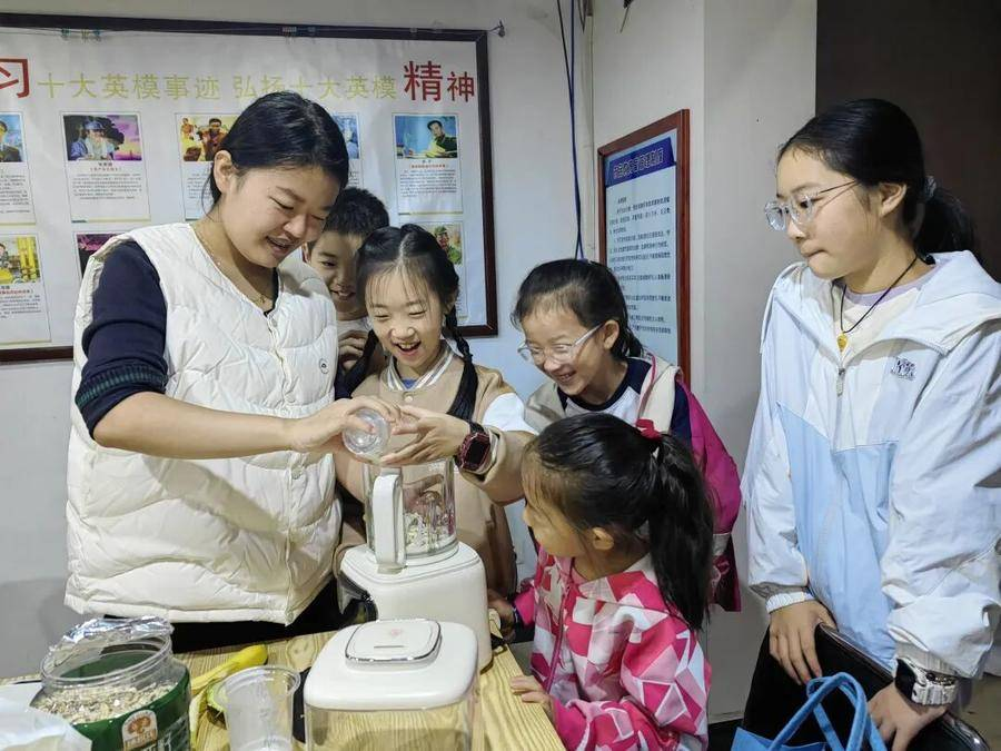 每周,由社区党员带队的大学生志愿团队都会为孩子们带来丰富多彩的课程:从趣味科学实验到创意手工制作,从传统文化体验到安全教育实践,形成了“科普+美育+实践”的多元课程体系。“老师讲的科学知识太有趣了!每次做实验都能学到新知识!”如今,9岁的乐乐每周最期待的就是科学课。