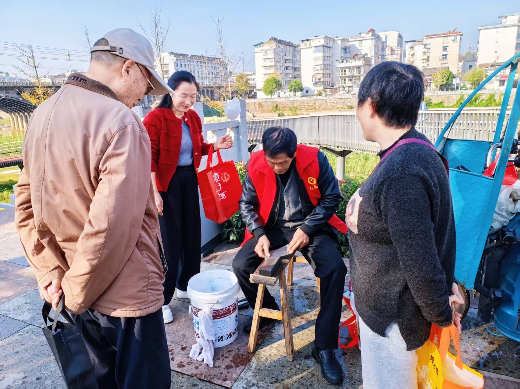 “这边可以测量血压、免费理发、手机贴膜…请大家不要着急,有序排队慢慢来。”免费义诊区前,新兴路邮政营业所工作人员耐心为居民测量血压、血糖;义剪区里,理发师细致修剪发型,让老人们焕发精神面貌;磨刀区则排起长队,老师傅娴熟的手艺让钝器重焕锋利;移动公司提供的手机贴膜除尘服务贴心解决了居民的日常小烦恼;“大姐,您看看,这是反诈的相关知识,平时陌生电话不要接,不明链接不要点;家庭防火‘九不可’;紧急救命法,心中要记牢……”红马甲志愿者们正在用通俗易懂的语言给居民讲解相关惠民知识。一系列便民举措让居民们在家门口享受到实实在在的便利,感受到社区的暖心关怀。