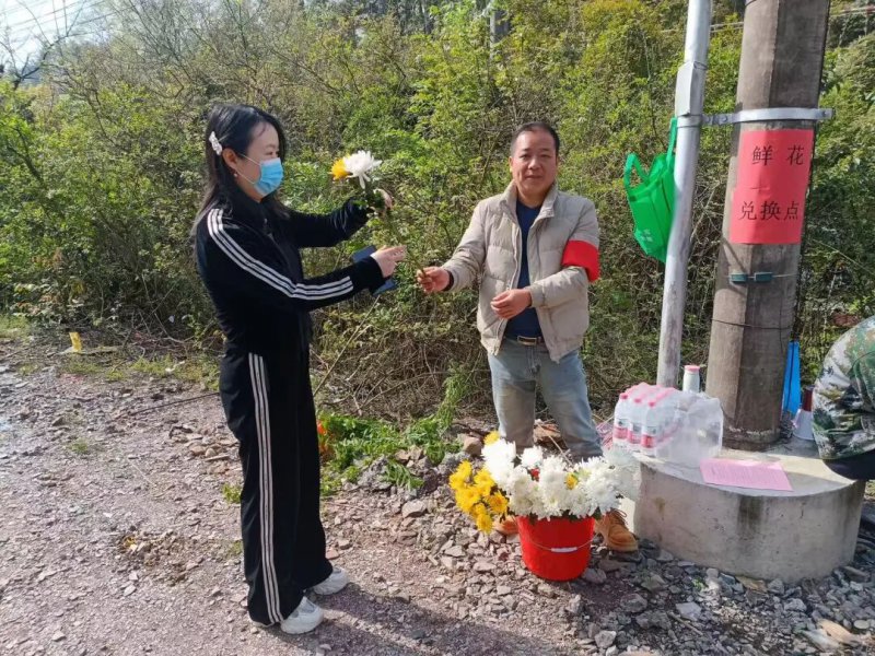 在工作人员的引导下,居民们积极响应,主动将手中的纸钱、塑料花交给志愿者,换上一束束寄托哀思的菊花。大妈们说道:“以前清明上坟都是烧纸放炮,确实有火灾隐患,现在换成鲜花祭扫,真是又安全又文明。”