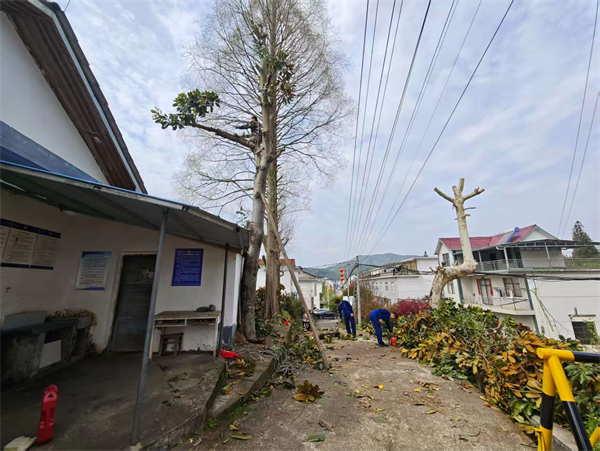 近日,祁门县溶口乡组织专业作业队伍,对辖区溶口学校及周边12棵高危树木树枝进行修剪并降低主干高度,方便师生和村民出行、消除安全隐患。