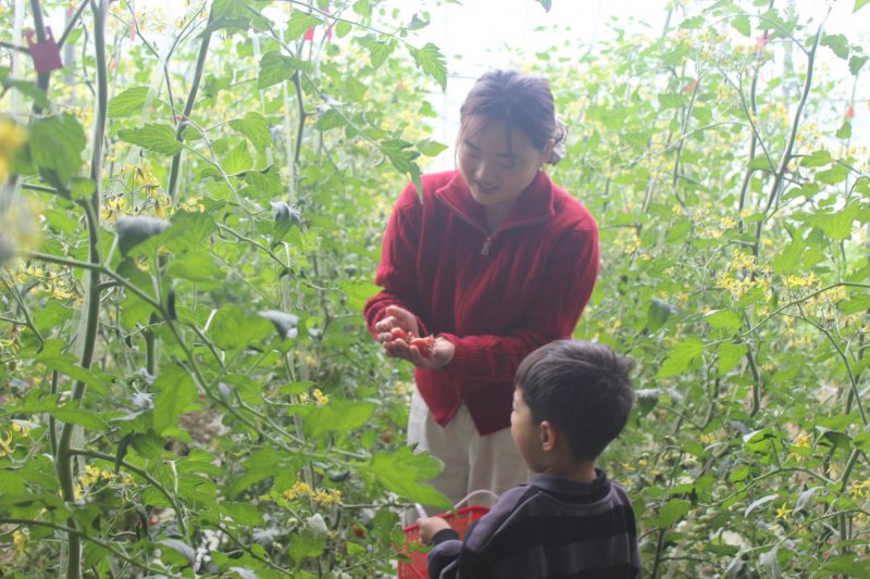 春日里的沱西村,不仅是赏景好去处,更是收获希望的热土。在圣女果种植棚内,来自城里的游客手提篮筐,穿梭于田垄之间——甜蜜的夫妻、温馨的母子,更有全家老少齐上阵的欢乐组合。孩子们好奇地观察蔬菜生长,大人们则忙着将饱满的圣女果、鲜嫩的冰菜收入囊中,欢声笑语洒满大棚。棚外,蔬菜收购商的车辆络绎不绝地驶入村头,洽谈、装车、发货,一派繁忙景象。据固镇县益磊专业合作社负责人赵坤介绍,每逢周末和节假日,前来体验田园生活、采摘新鲜果蔬的城里人格外多,绿色健康的农产品已成为连接城乡的“甜蜜使者”。