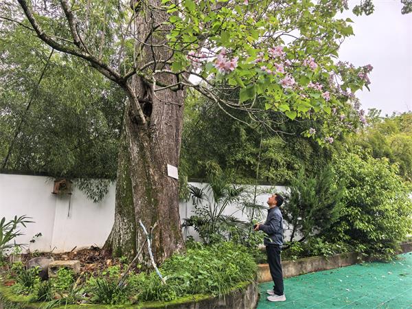 花开时节,师生们驻足树下赏花研学,触摸古木纹理、聆听古树故事。古老的灰楸不仅见证着校园的变迁,更成为生态保护与文化育人相融的生动载体,在林业部门的悉心守护下,持续绽放着跨越百年的生机与芳华。(吴勇 郑晨晨)