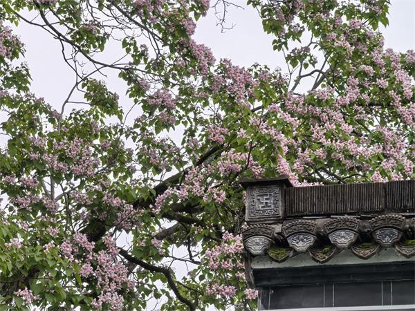 近日,歙县雄村镇雄村学校内,两株树龄超260年的灰楸迎来盛花期。淡粉花瓣缀满枝头,随风摇曳间,与校园的琅琅书声相映成趣,为春日校园铺展了一幅雅致灵动的画卷。
