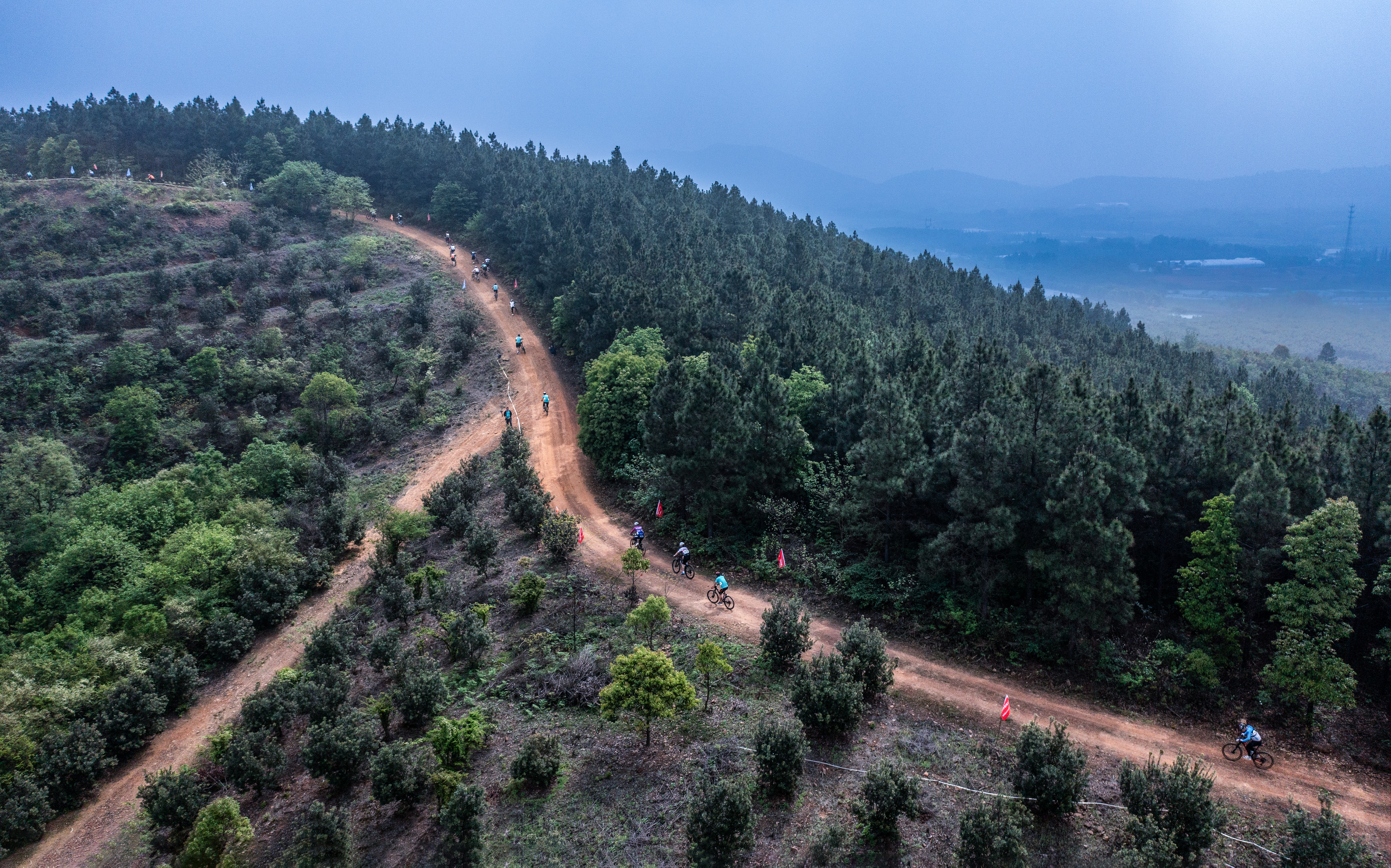 赛道设计巧妙串联起一系列自然地标与人文景观,竞赛线路途经马鞍山杨梅园、蓝莓园、脚脉山白茶园、过龙山黄金芽茶园等地。骑游线路起于过龙山,经花冲、悬月寺等地,终点八都苏。选手们在赛道上纵情挥洒汗水,体验惊险刺激的同时,领略纯粹本真的山林风光,浸润岁月静好的古村风韵。
