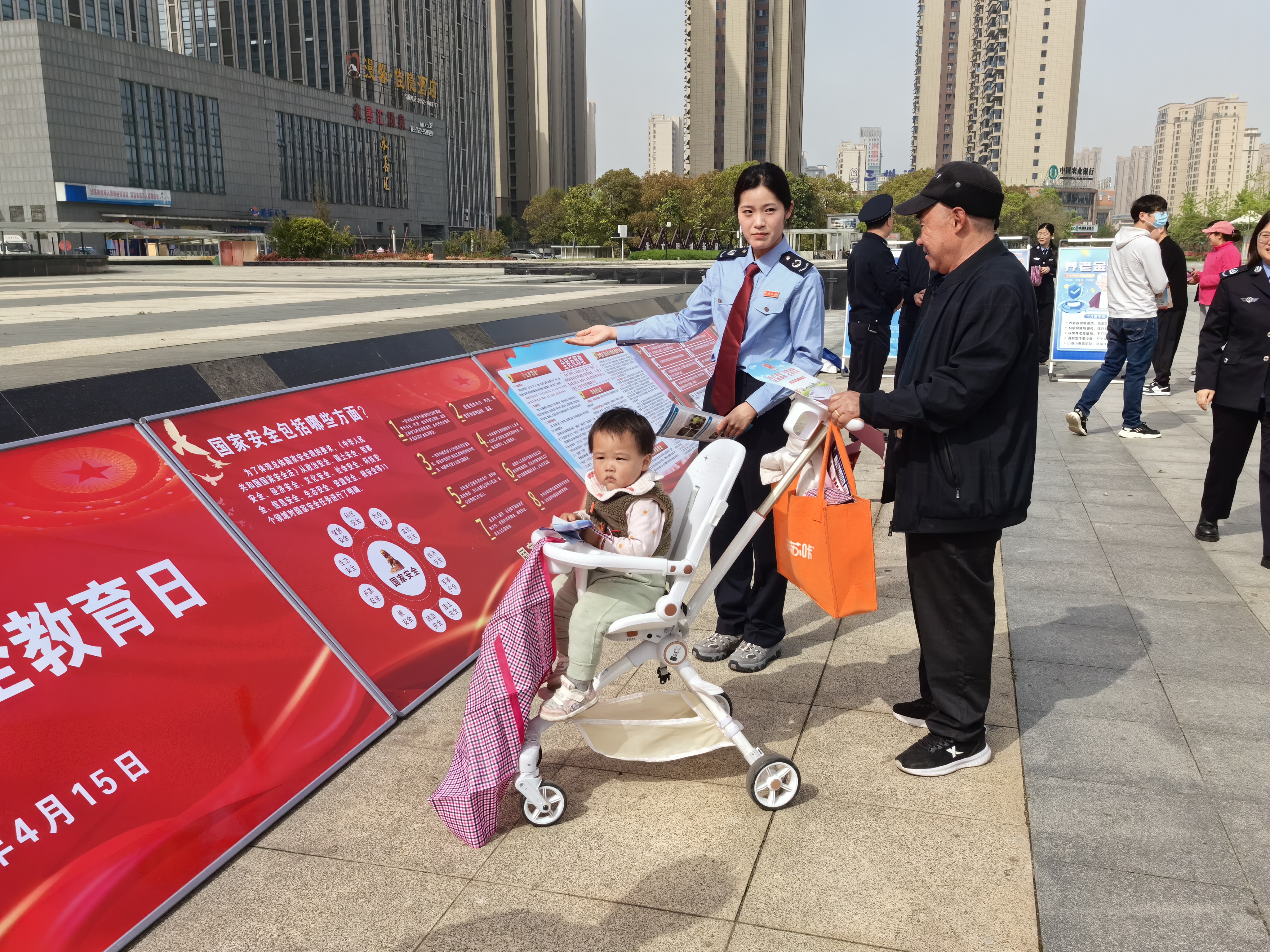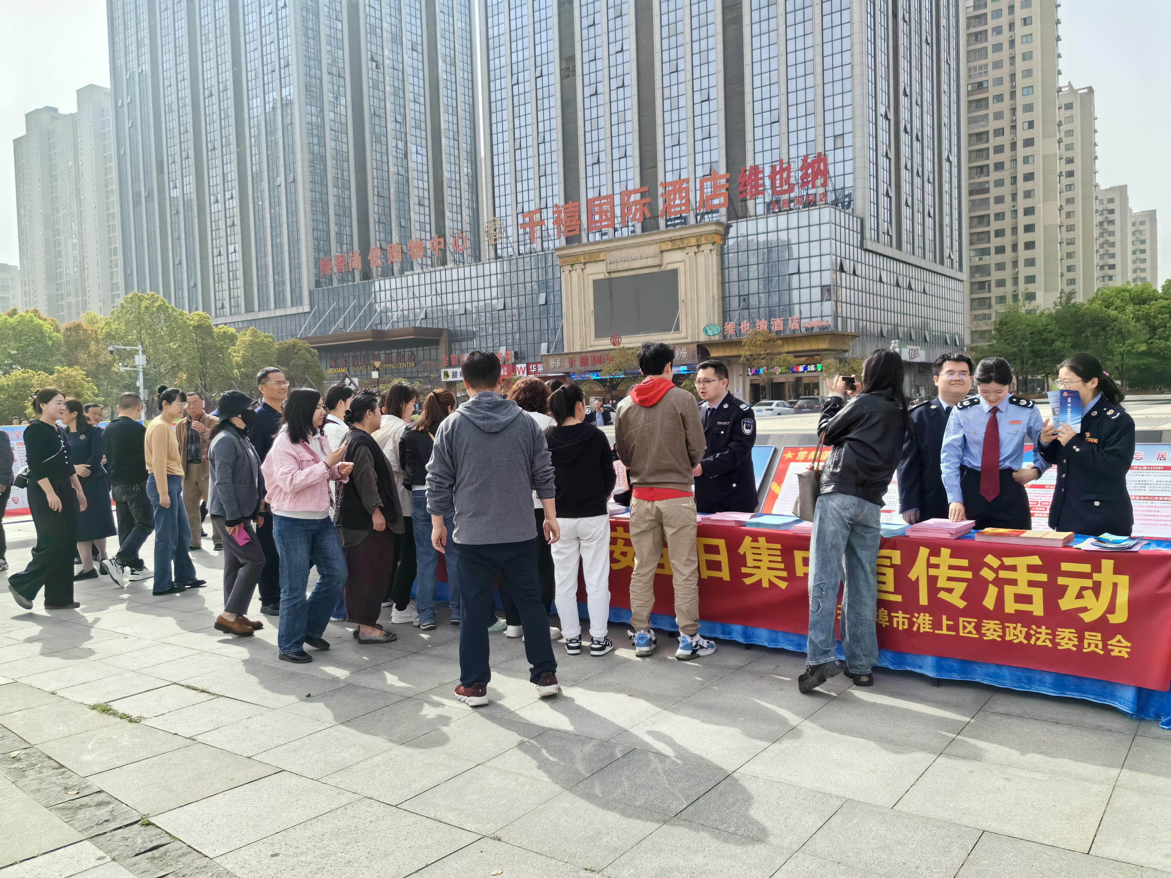 据了解,明珠广场作为淮上区的标志性地点,此次活动选择在此举办,不仅彰显了淮上区对国家安全日的高度重视,也体现了对广大市民的深情厚意。广场北侧约130米的永昌国际大厦高耸入云,与活动现场形成鲜明的对比,更显此次活动的庄重和严肃。
