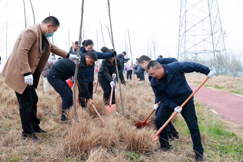 干群共绘生态画卷植树现场,一派繁忙景象。相山区领导率先垂范,与干部群众一同投入到植树劳动中。挥锹铲土、扶苗定植、培土围堰、提水浇灌,每一道工序都认真细致,衔接有序。“这棵栾树苗得扶直了,培土要踩实,这样它才能扎根稳长得壮。”林业技术人员在一旁耐心指导,从苗木选择、栽植关键到后期管护,一一讲解要点,确保栽一棵活一棵,种一片绿一方。