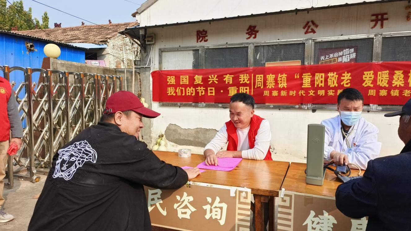 近日,砀山县周寨镇新时代文明实践所弘扬中华民族尊老、敬老、爱老、助老的优秀传统文化,联合镇老年学校、团委、文化站、卫生院开展了“强国复兴有我”——周寨镇“重阳敬老 爱暖桑榆”系列志愿服务活动,志愿者走进周寨镇安康敬老院,通过便民咨询、基础看诊等方式,为老年人提供便捷、贴心的服务。
