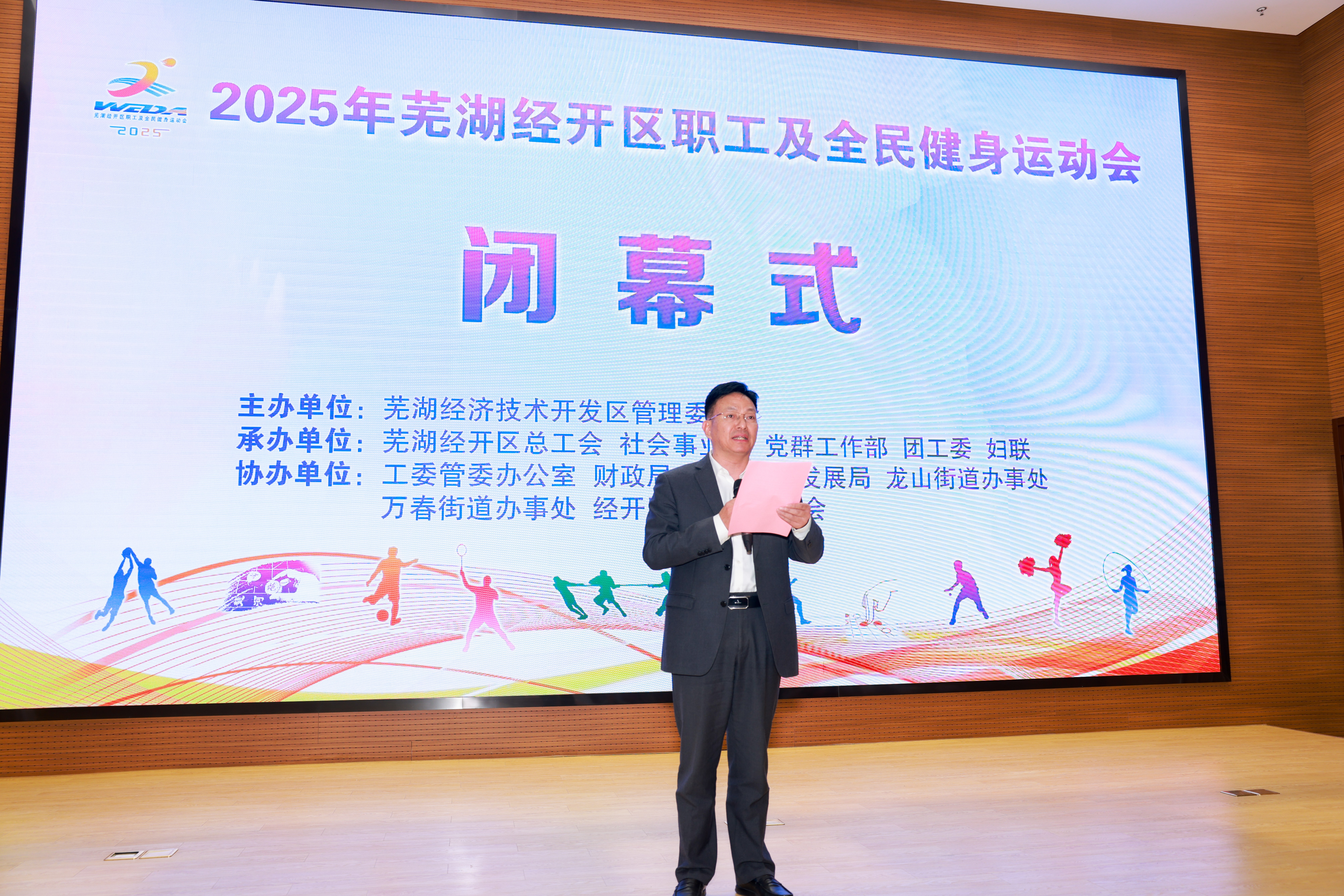 日前,2025年芜湖经开区职工及全民健身运动会在完成所有的预定赛程后胜利闭幕。中华全国总工会芜湖经开区蹲点组,芜湖经开区党工委有关负责人出席。