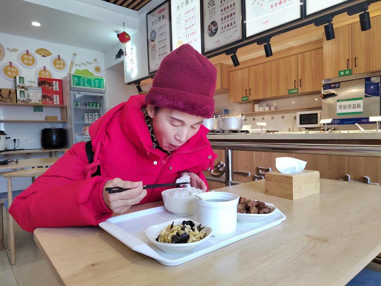 老街街道位于屯溪中心城区,辖区内70岁以上老人921人,为了解决好居家老人的吃饭难题,2022年,老街街道与餐饮企业开启了合作助餐模式,通过“政府补一点”、“企业让利一点”,“个人掏一点”的原则,让有助餐需求的老年人享受到了优惠、便捷的助餐服务。“所有的菜品都围绕着适合老人软烂、少盐、少油的品味准备的,同时,我们还做了小份菜,吃多少打多少,不会浪费。”屯溪老街“乐欢聚”老年食堂负责人胡翠青向记者介绍道。