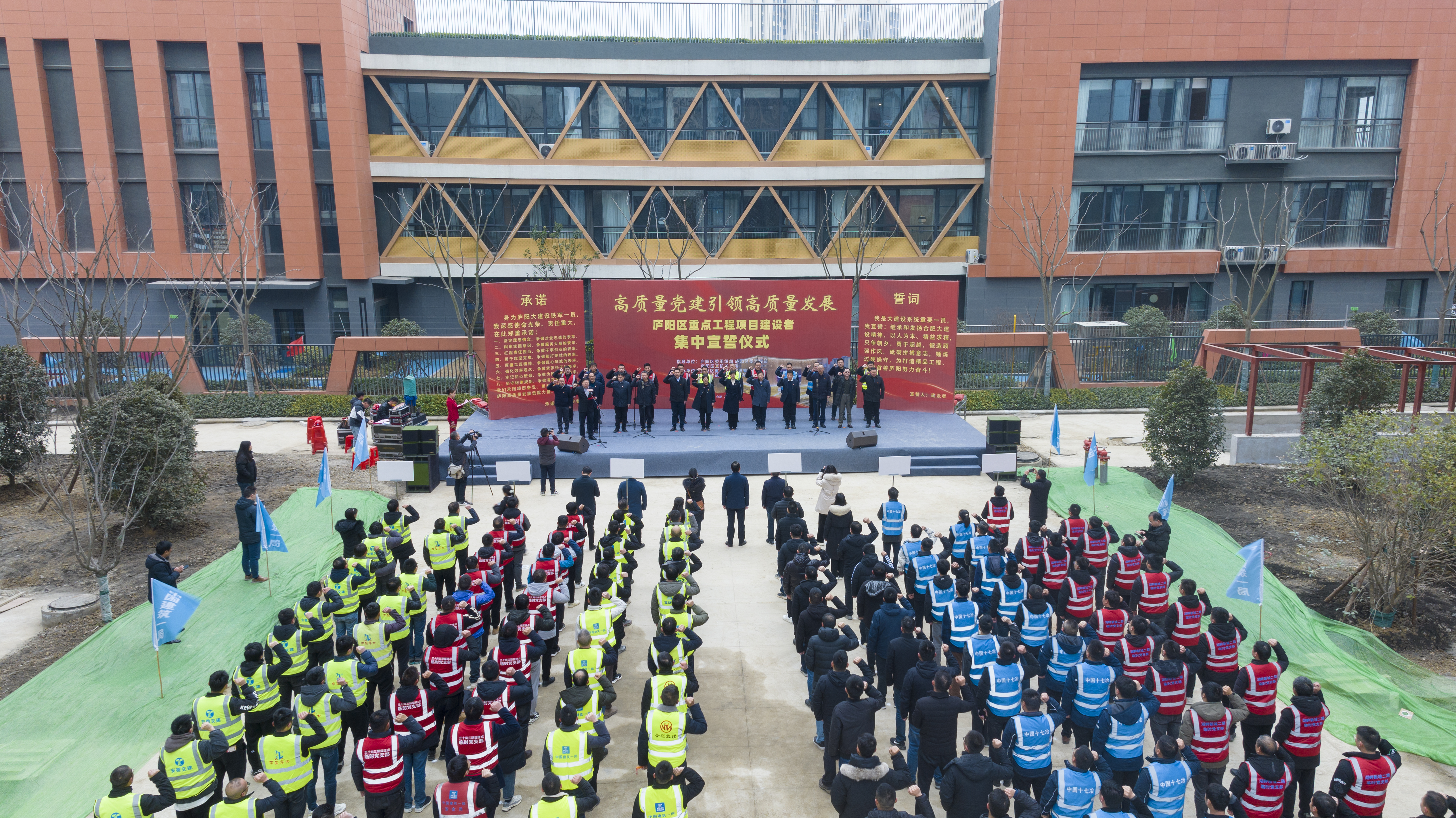 2月23日上午,庐阳区重点工程项目建设者宣誓活动在合肥市庐阳区龙王唐岗复建点项目现场举行。该区重点工程建设者代表近200人庄严宣誓,继承和发扬合肥大建设精神,打造精品工程,建设首善庐阳!同时,在美丽景湾复建点、庐阳中学北校区、肥西路上跨北一环等十余个项目分会场,建设者们也同步宣誓。