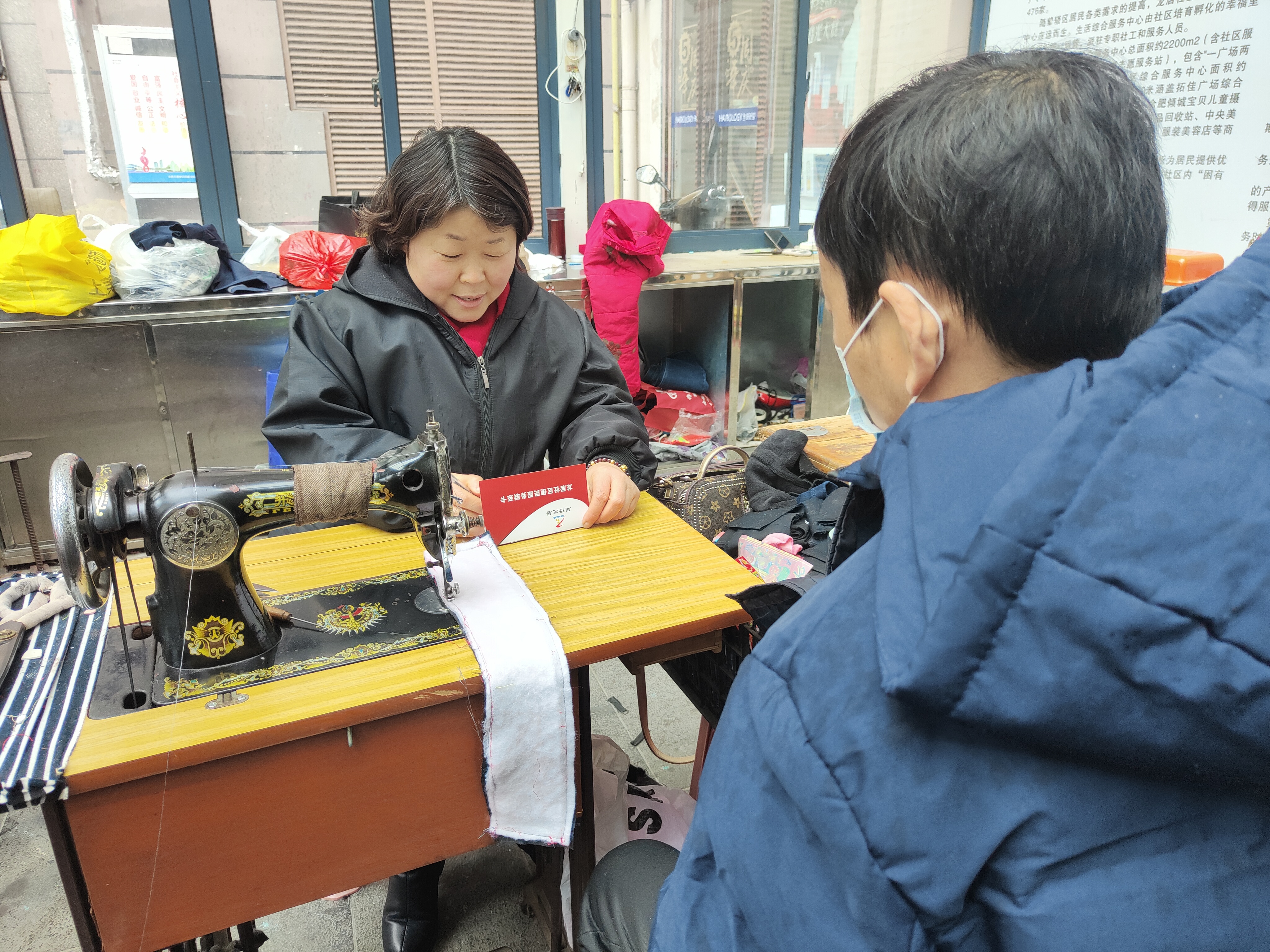 “夏大姐,你好,麻烦把我的衣服修补一下,这是我的便民服务卡,请您记录一下。”日前,五里墩街道龙居社区辖区低保户王永成到社区志愿服务广场便民服务亭配钥匙,享受了只收取成本价服务。