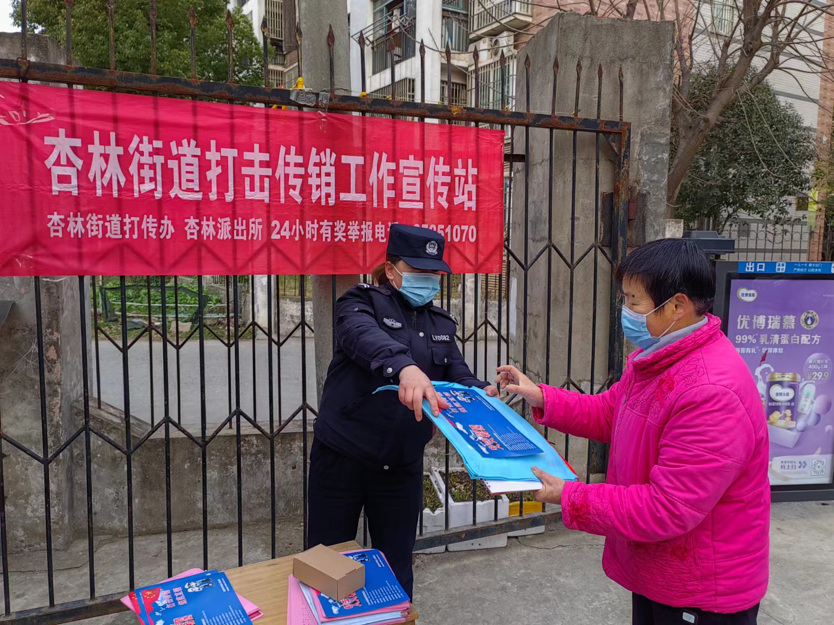 近日,庐阳区杏林街道为进一步推动打击和取缔传销工作,提高群众打击传销的防范意识,街道打传办联合杏林派出所、杏林市场监管所、各社区党委共同开展打击传销“春季固守”专项行动,重点围绕“宣、管、清”三字打传要诀,不断提升群众获得感、幸福感和安全感。