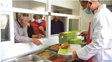 老人在老年食堂吃上热乎可口的饭菜