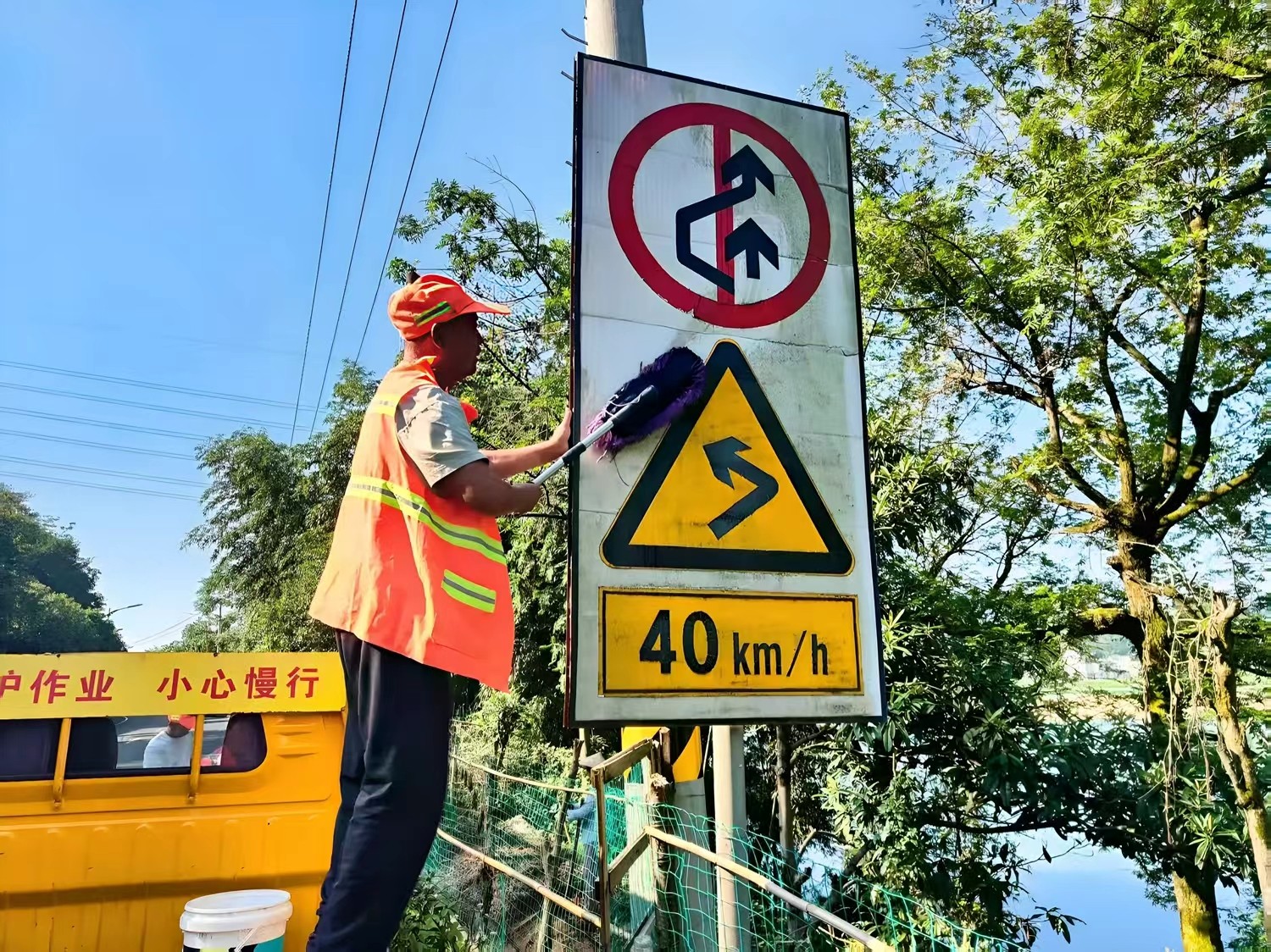 为进一步提升沿线公路路容路貌,道班职工自9月上旬开始全线铺开路肩绿化带和边坡高草修剪工作,“十一”节前完成全部高草修剪任务,目前已完成高草修剪近20万平方米。同时加大了路面的清扫保洁力度,组织道班职工对灰尘重、影响观瞻的波形梁钢护栏、隧道瓷砖进行清洗,共清洗波形梁钢护栏66800米、隧道瓷砖16000平方米,清理边沟19000多米、涵洞12道,擦洗标志牌、凸面镜165块,桥梁护栏刷白1800平方米,清理沿线垃圾、边沟土石杂物和林业生产、电力施工遗留在边坡上、边沟内的树木枝叶共100多立方米。