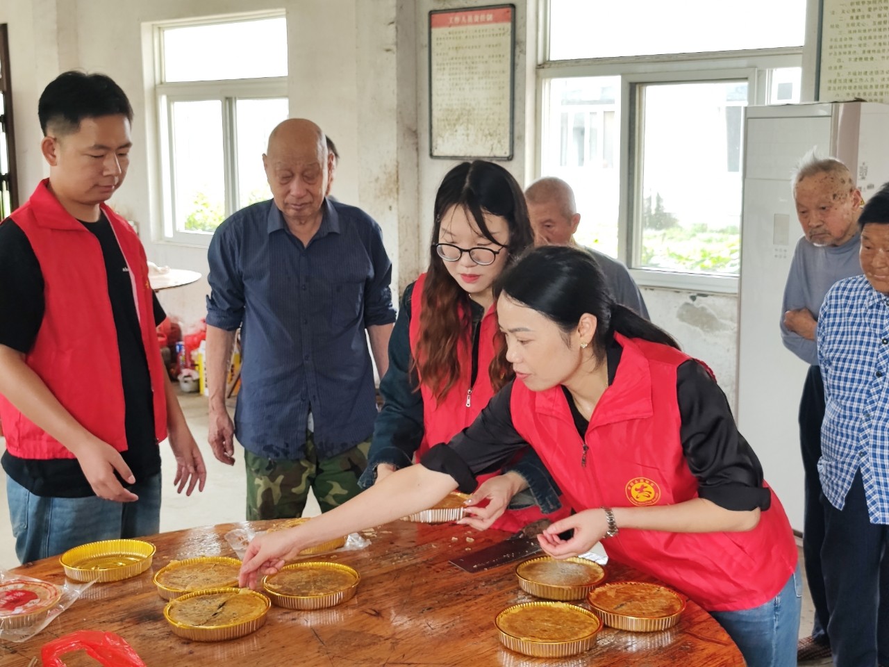 志愿者将香喷喷的月饼切好分装,挨个送至老人的手上,与老人们亲切交谈,详细询问他们的饮食起居和身体状况,并致以节日的祝福。老人们接过月饼,脸上洋溢着幸福的笑容,纷纷表示“这月饼吃着很香,心里更是暖和和的。”