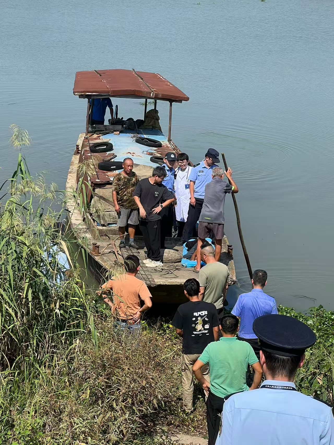 见状,民警在与报警人时刻保持电话沟通的情况下,立即向无为市公安局战防联勤中心汇报现场情况,后陆续与芜湖市海事局、无为市刘渡镇人民政府以及该市消防救援局、交通运输局、急救中心和蓝天救援队等单位(部门)取得联系,请求支援。