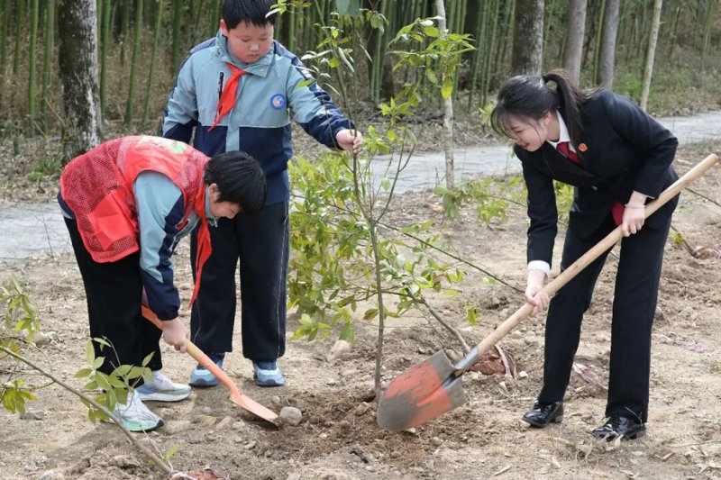 活动现场,大家分工协作、挥锹培土、扶苗浇水,合力栽下一株株新苗,原本空旷的地块添上片片新绿,为这片生态宝地再增盎然生机。法院干警在现场还同步开展生态普法宣讲,用通俗易懂的讲解普及相关知识,让绿色发展理念在互动中深入人心。