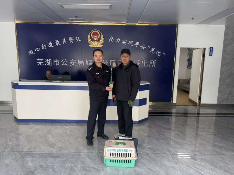 近日,芜湖市公安局鸠江分局官陡派出所民警成功救助一只受伤的国家二级保护动物凤头鹰,用暖心举措守护野生动物安全,其责任担当与专业处置得到辖区群众及相关部门的高度认可。3月23日,芜湖市野生动物保护协会专程来到官陡派出所,为参与此次救助的民警颁发救助勋章,以表彰其在野生动物保护工作中的积极贡献。